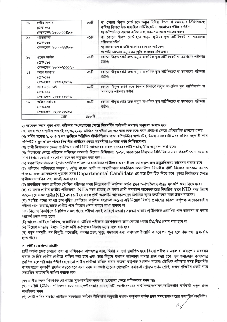 মোট পদ সংখ্যা: ১৮৮টি