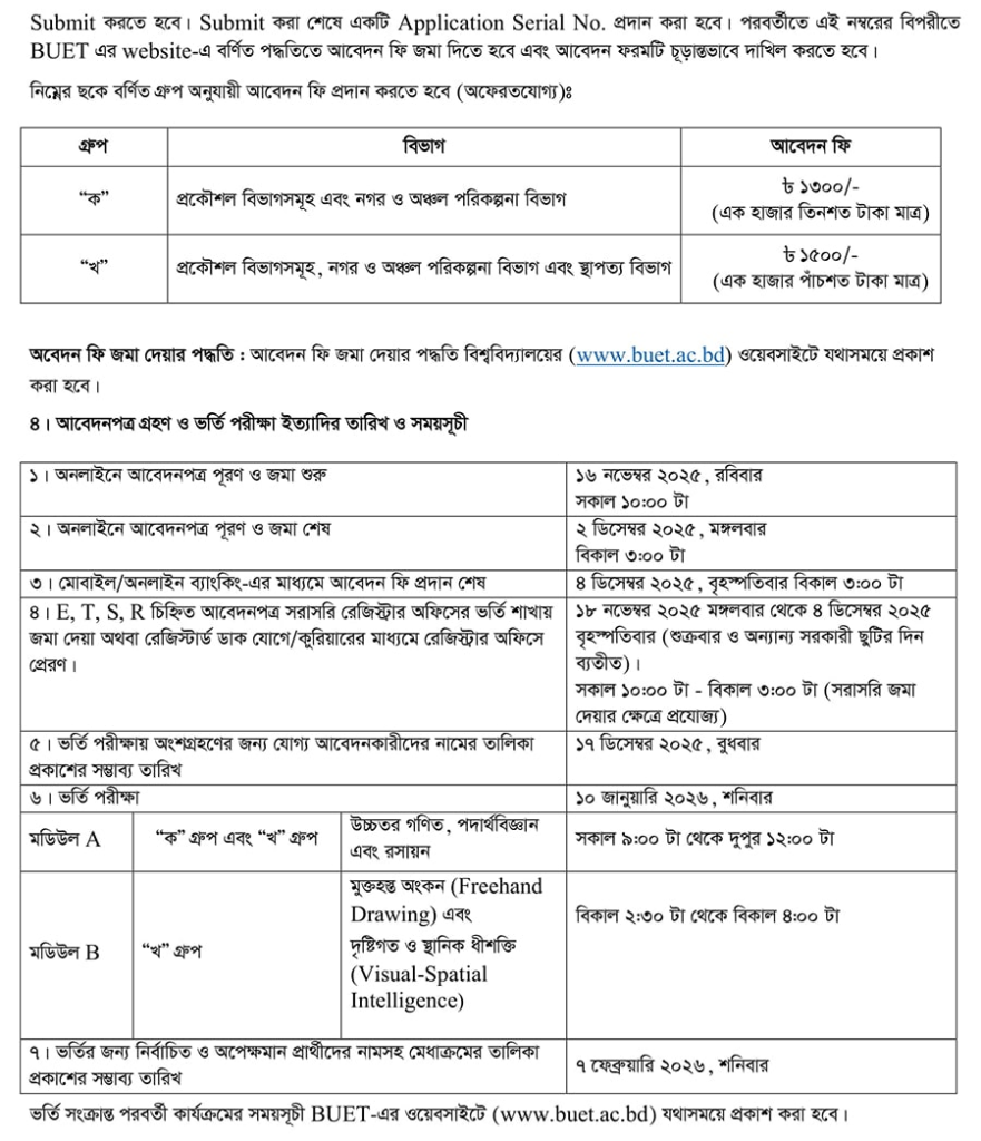 আবেদন লিংক: https://www.buet.ac.bd/web/#/ugAdmission/1