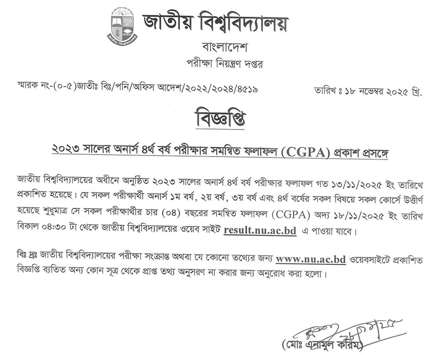 আমাদের শেষ কথা – NU Honours Consolidated/CGPA Result 2025 – 4th Year